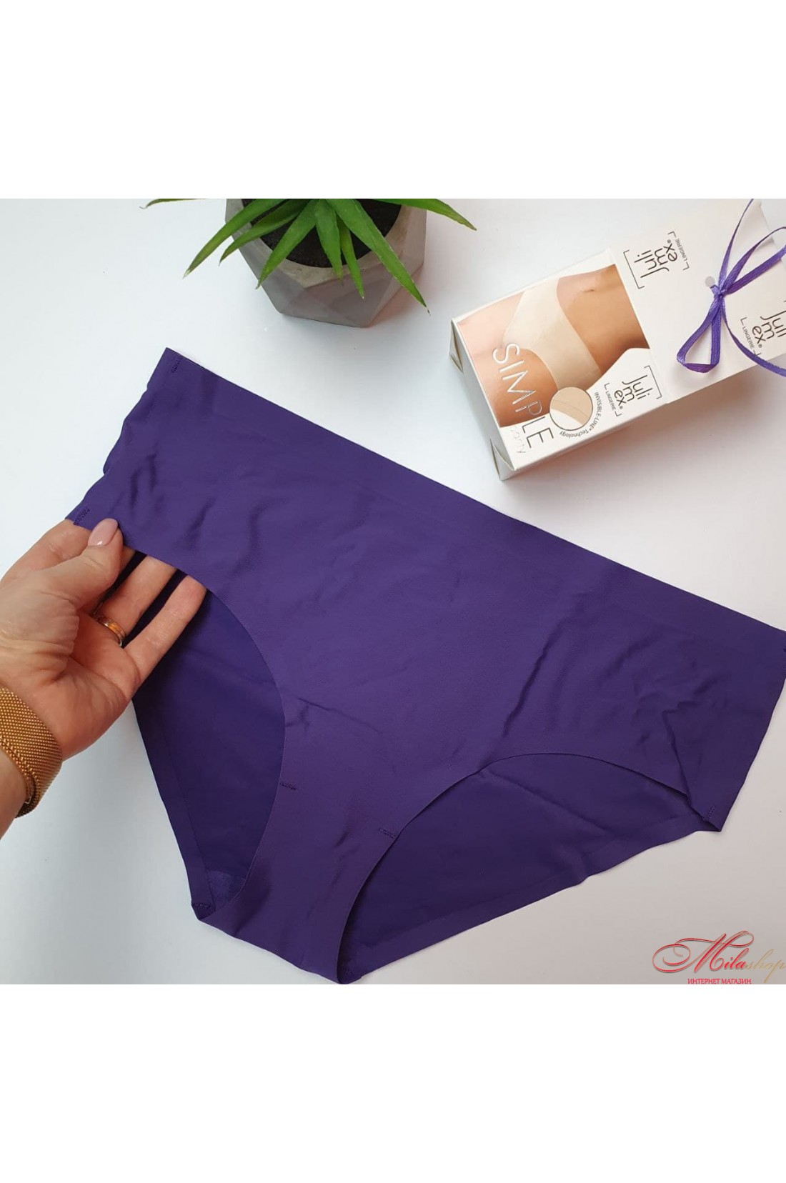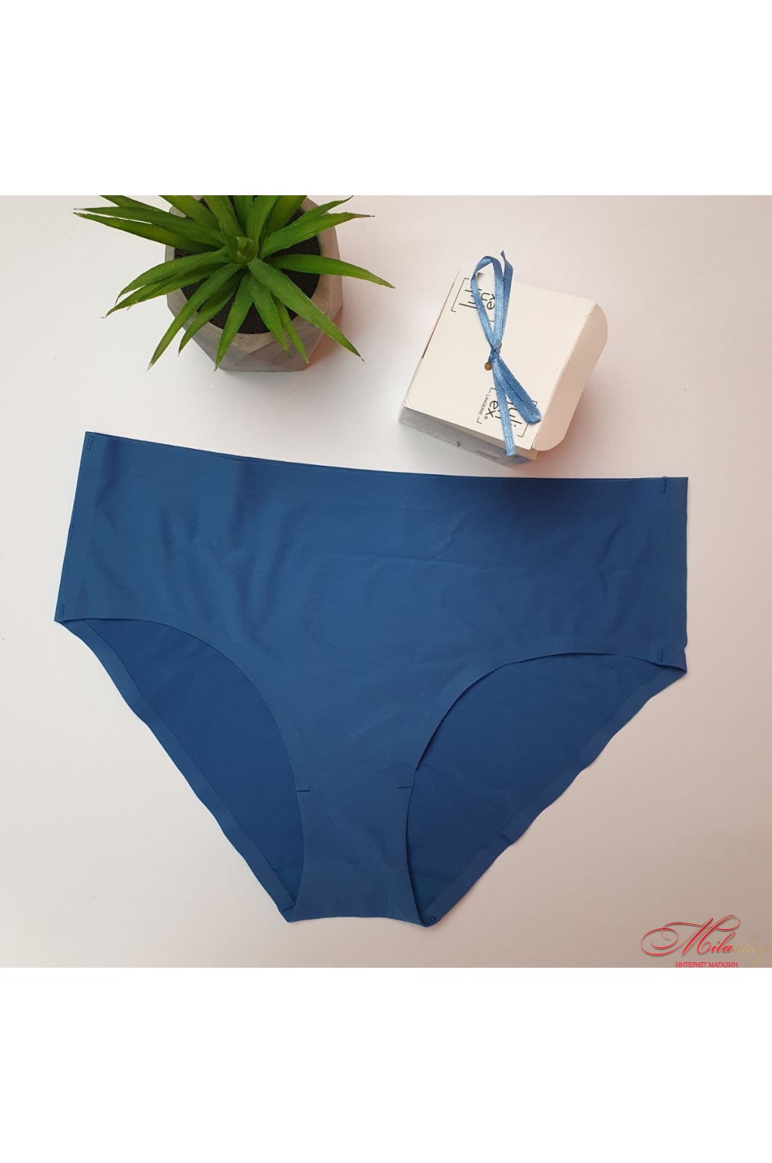 Трусики слип; классическая средняя посадка с широкими боковинками; ультратонкие бесшовные края обработаны по инновационной технологии Invisible-Line; боковые швы эластичные и растягиваются на теле, незаметны под одеждой; вшита хлопковая ластовица; упакованы в подарочную коробку с бантиком.
