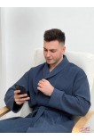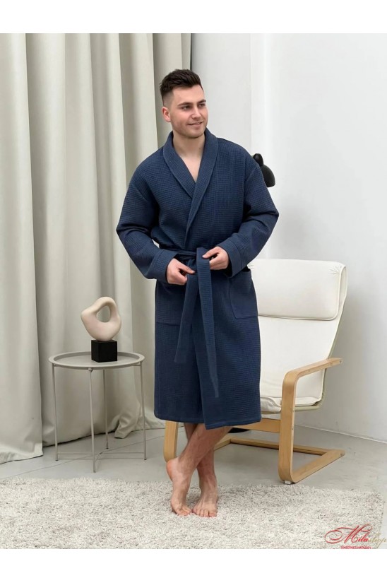 Элегантный халат – это сочетание комфорта, стиля и качества для тех, кто ценит удобство каждой детали. Модель предназначена для максимального комфорта дома, в бане или гостинице и выглядит статусно и аккуратно. Классический шалевый воротник придает изысканность образу, одновременно оставаясь мягким и удобным в ношении. Продуманный крой обеспечивает комфортную посадку, а немного приспущенная линия плеча придает современности и свободе движений. Регулируемые рукава легко подстраиваются под рост – их можно подвернуть к нужной длине. Халат выполнен из высококачественной вафельной ткани из 100% турецкого хлопка. Натуральный материал прекрасно пропускает воздух, позволяет коже дышать, хорошо впитывает влагу и не вызывает дискомфорта даже при длительном ношении. Вафельная структура создает легкий массажный эффект и делает изделие особенно приятным для тела.