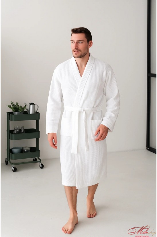 Мужской белый вафельный халат предназначен для вашего комфорта и заботы о себе. Легкий и удобный вафельный халат идеально подходит для дома после душа или ванны, а также станет незаменимым спутником в бане, сауне или на отдыхе в спа. Вафельная ткань не только дарит приятные ощущения на коже, но быстро поглощает влагу. Благодаря длинному крою халат обеспечивает максимальный комфорт в повседневном использовании. 100% натуральный хлопок (Турция) – мягкий и дышащий, прекрасно впитывает влагу, универсальный вариант – для дома, бани, сауны или спа, классический белый цвет придает ощущение свежести и легкости, практичный и стильный длинный фасон. Усадка после стирки: до 6%. Такой халат станет вашим излюбленным аксессуаром для отдыха и домашних ритуалов красоты.