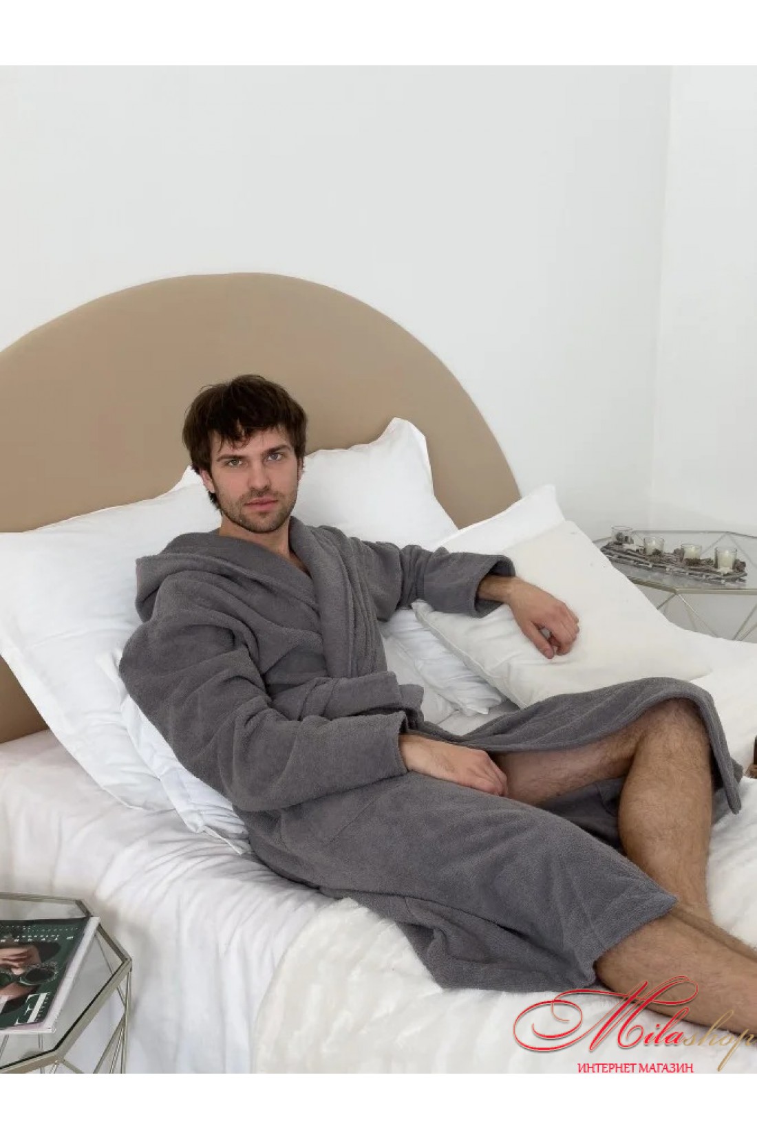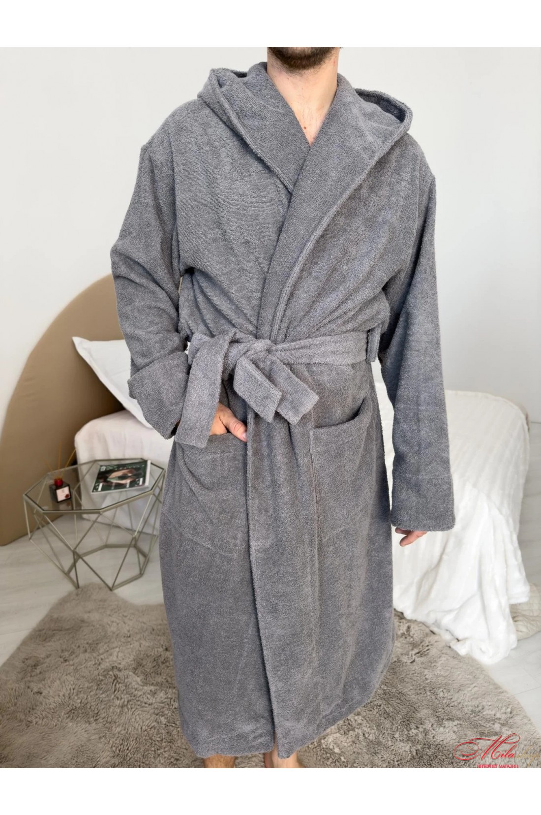 Окунись в комфорт и стиль с нашим мужским халатом с капюшоном из махровой ткани! Изготовленный из высококачественного турецкого 100% премиального хлопка и двусторонней бахромы, этот халат обеспечит тебе высокий уровень комфорта. Благодаря оптимальной плотности он идеально впитывает влагу, обеспечивая тебе ощущение свежести и сухости. Халат оснащен поясом и удобными карманами для твоего удобства. Регулируемые манжеты с отворотом позволяют тебе настроить длину рукава, обеспечивая идеальную посадку для тебя. Изготовленный из натуральных материалов, этот халат позволяет твоей коже "дышать", предотвращая появление дискомфорта. Благодаря высокому качеству ткани и стильному темно-серому цвету он станет незаменимым элементом гардероба.