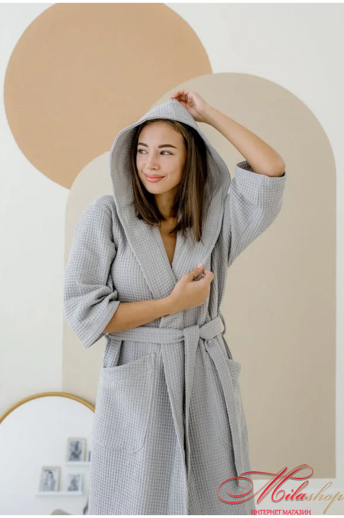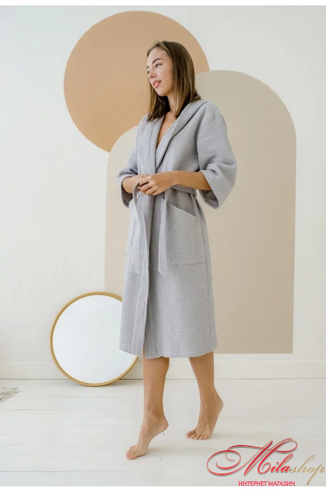 Вафельный женский халат с капюшоном COSY 201