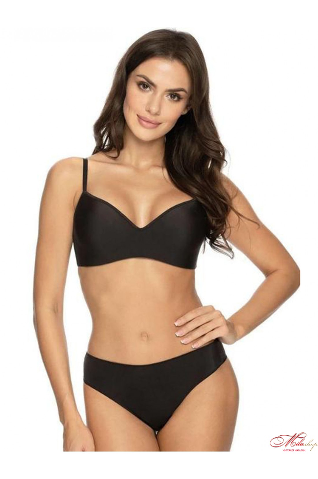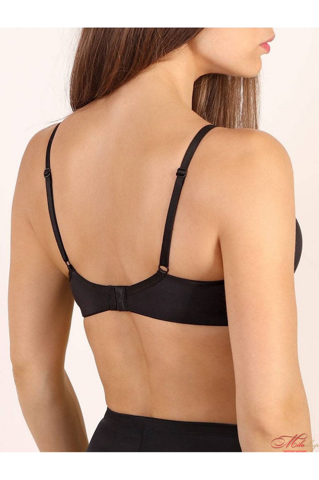 Базовый гладкий бюстгальтер, формованные уплотненные чашки без косточек, поддерживают грудь и не сдавливают ее. Бесшовные гладкие края, бюстгальтер не выделяется под одеждой, боковые детали дублированы микросеткой для дополнительной фиксации, укреплены вертикальными пластинами. Бретели не отстегиваются, регулируются по длине. Застегивается на спине крючками.