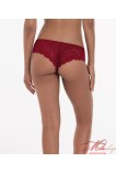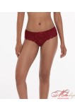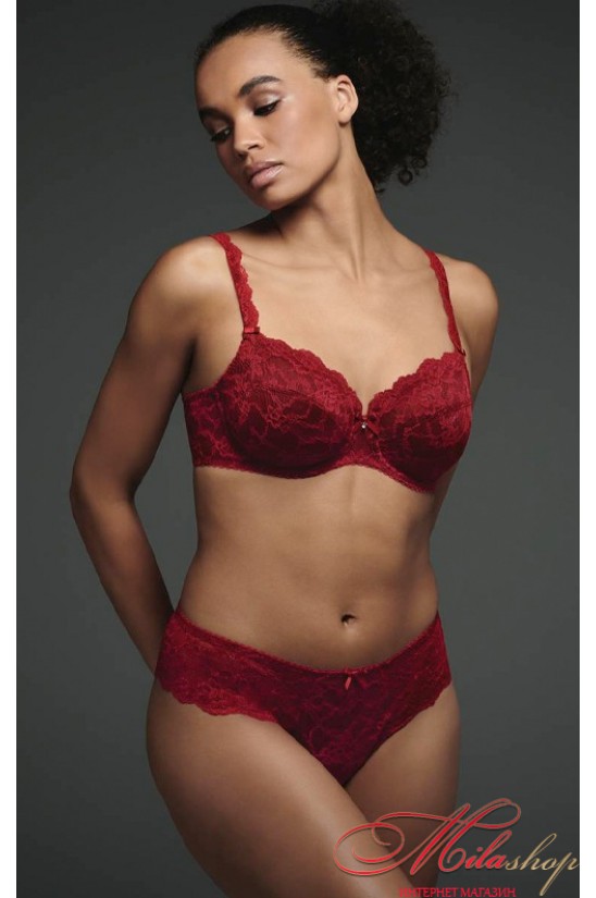 Трусики бразилиана изготовлены из кружева с цветочной вышивкой, спереди на черной подкладке. Вырез по талии и ноге отделан мягкой эластичной лентой.