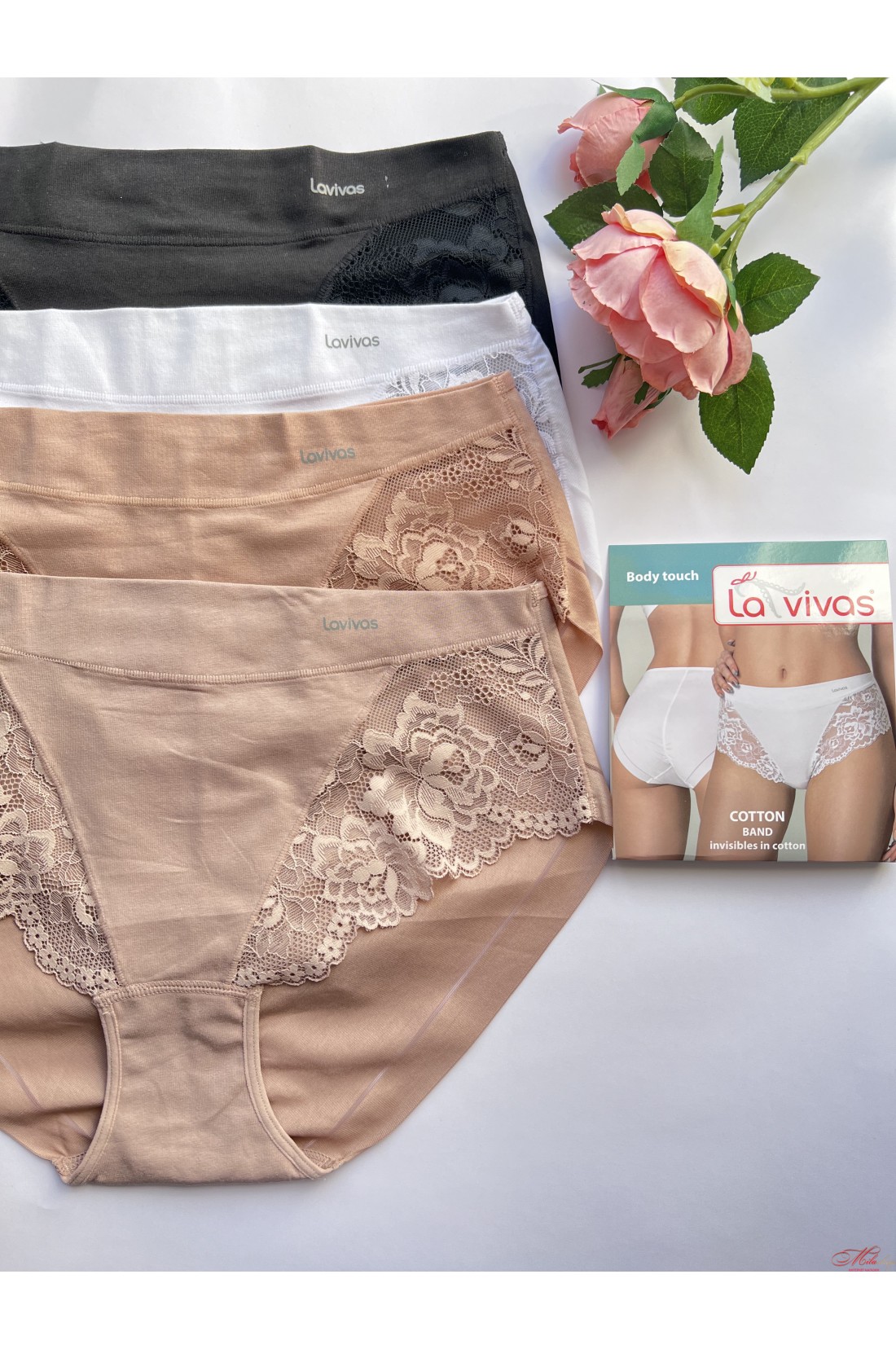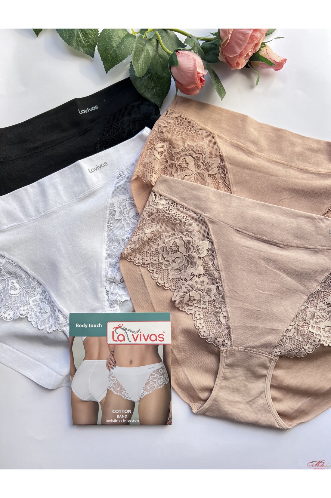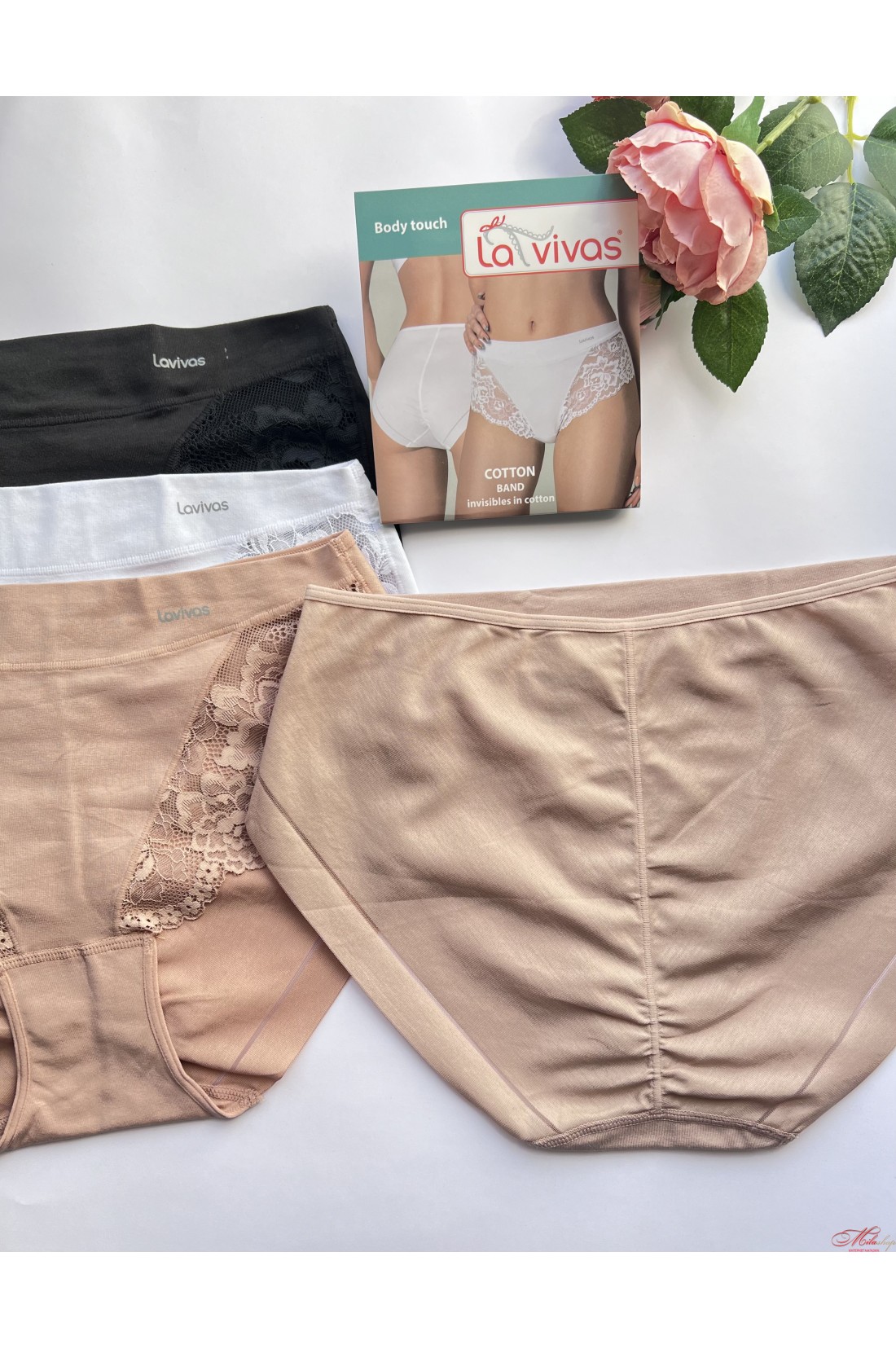 Трусики La Vivas выполнены из хлопка с кружева. С высокой линией талии. Очень комфортные и мягкие, сзади моделирующий шов.