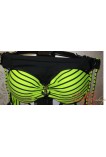 Купальник выполнен из высококачественного полотна. Бюстгальтер "бандо" со съемными бретелями, с эффектом пуш-ап, украшен полосатым орнаментом. Трусики слип с низкой линией талии, с кулисками по бокам, выполнены в одном тоне.