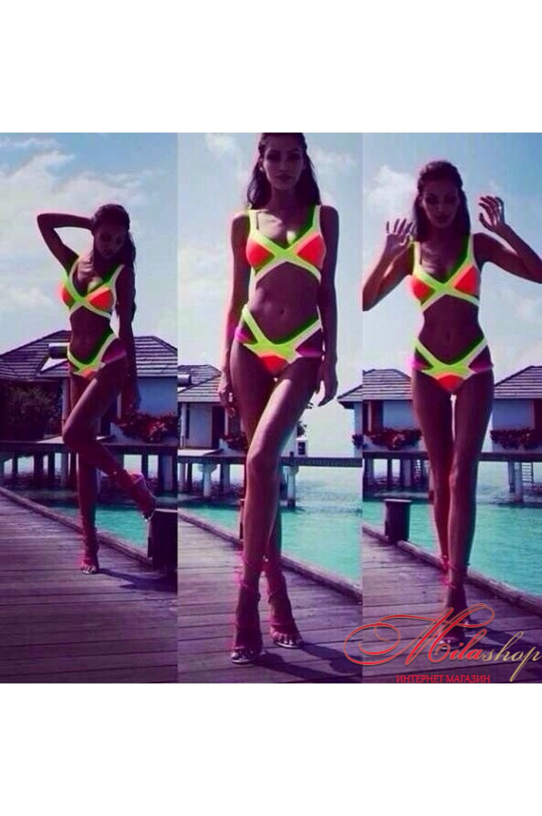 Яркий купальник с переплетами Fashion 1100